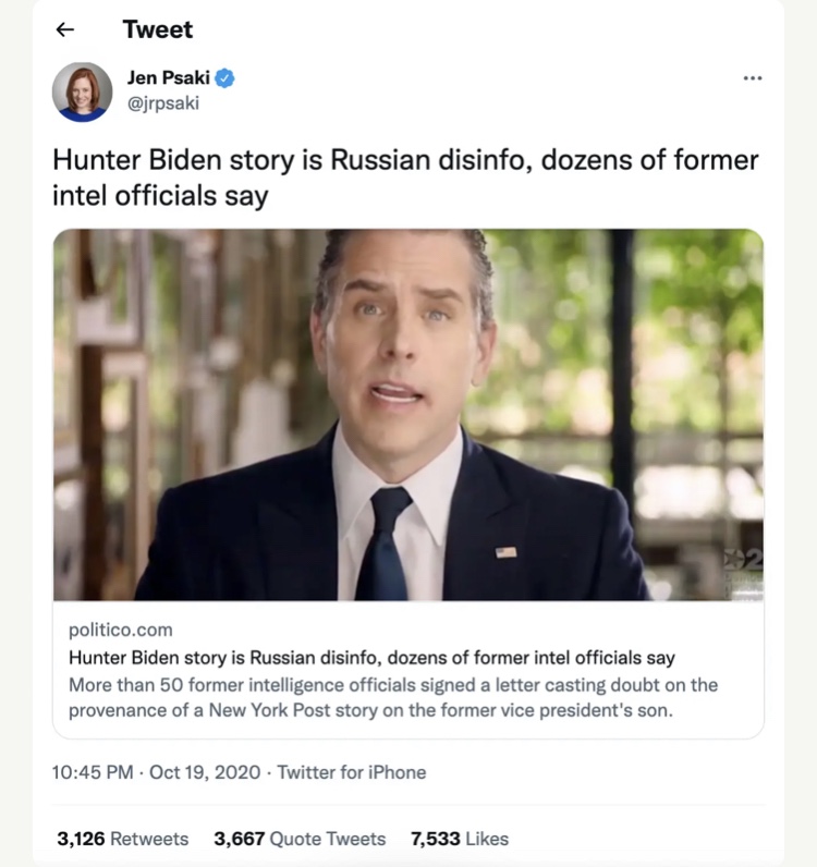 ¿Alguna vez se ha comprobado alguna historia con más energía que el portátil de Hunter Biden? La noticia se dio a conocer solo unas semanas antes de las elecciones presidenciales de 2020, y fue tan efectivamente enterrada por acusaciones de desinformación y prohibiciones en las redes sociales que se convirtió en sinónimo del poder de la nueva verdad que regula la burocracia. Poco después de los primeros informes de la computadora portátil, Kevin Roose de TheNew York Times reconoció modestamente el papel que habían desempeñado los periodistas de desinformación como él en presionar a las empresas tecnológicas para que tomaran «medidas cada vez más rápidas para evitar que se difundiera información falsa o engañosa… con el fin de evitar que se repita la debacle de 2016».