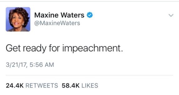 Ayer la demócrata Maxine Waters tuiteó: «Prepárate para el juicio político», con respecto al presidente Donald Trump. ¿Podría ser hoy el día en que aprieten el gatillo, por así decirlo?