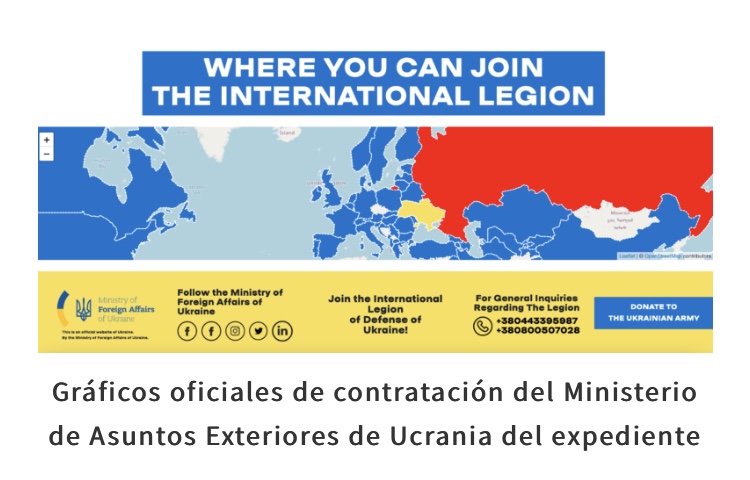 El expediente también contiene un enlace a una página del Ministerio de Asuntos Exteriores llamada «Lucha por Ucrania», que proporciona instrucciones para los extranjeros que desean unirse a las fuerzas armadas infestadas de Ucrania, denominadas «Legión de Defensa Internacional de Ucrania».