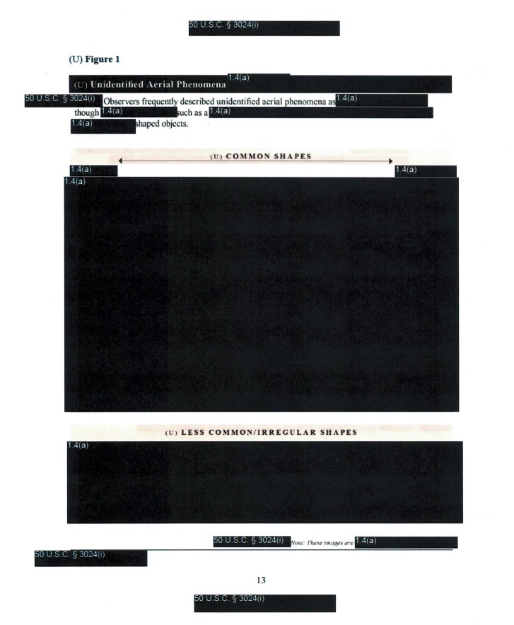 The Black Vault, por otro lado, ha recibido un informe de 17 páginas en el que algunas páginas han sido borradas casi por completo. Dentro de estos pasajes redactados, el Departamento de Defensa enumera imágenes y gráficos como formas comunes y menos comunes (o irregulares) de avistamientos de ovnis. Estas secciones están totalmente ausentes del informe público. https://t.me/QAnons_Espana