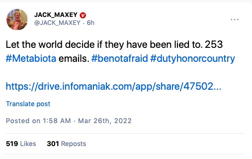 Hace seis horas, Maxey publicó todos los correos electrónicos que detallaban la interacción de Hunter Biden y la familia Biden con el desarrollo de laboratorios biológicos en Ucrania.