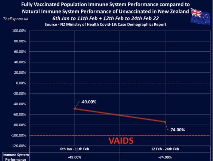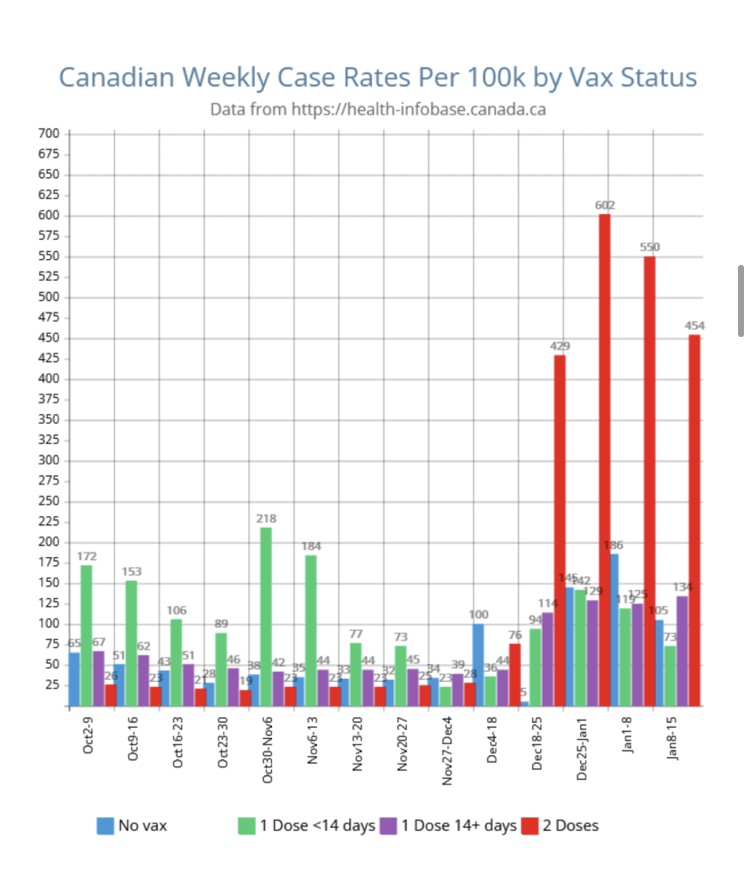 Mientras tanto, la Exposición del 28 de enero publicó un artículo utilizando estadísticas del Gobierno canadiense para demostrar la progresión de las VAIDS en los doblemente vacunados. El gobierno canadiense luego amajó sus cifras para la semana del 15 al 22 de enero (que se produjeron en febrero) en un absurdo intento de refutar a VAIDS.
