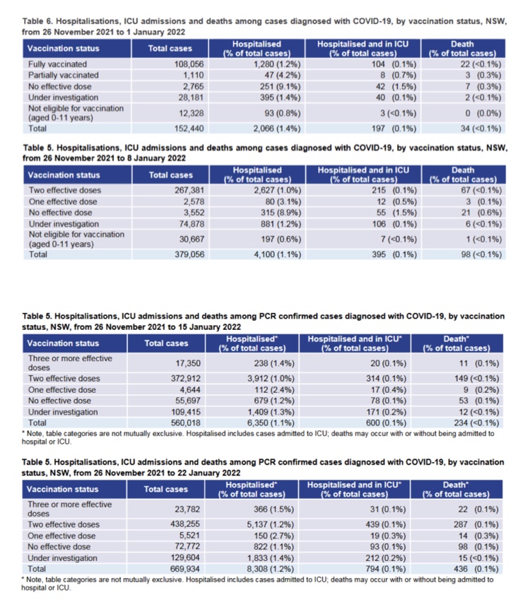 Así que para el 8 de febrero, el gobierno de Nueva Gales del Sur había diseñado un escenario en el que la relación de 202,5 a 1 casos entre la doble dosis y la no dosificación había caído a 65.343 a 68.128 o 0,95 a 1. Ahora había más casos de Omicron en el unvaxxed que en el doble vaxxed, ¡a pesar del hecho de que el 95% de NSW es doble vaxxed! ¡Creo que lo cocinaron demasiado!