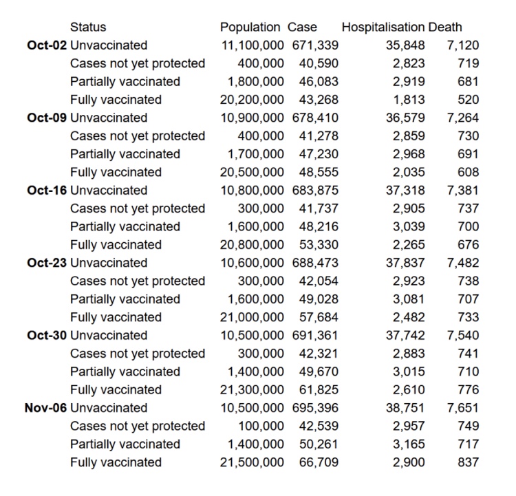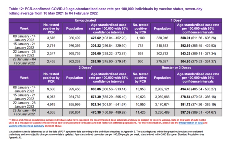 Lo que deberían decir estas advertencias de UKHSA y PHS es que las tasas de casos normalizadas son la forma correcta de calcular la eficiencia de las vacunas y todas las demás cifras de este informe que no equivalen a dicho cálculo correcto son inexactas en la medida de su disparidad allí.