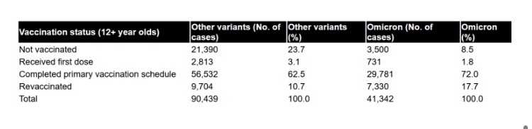 Los doblemente vaxxed tenían 4020 casos de Omicrones y constituían el 70,53 % de la población.