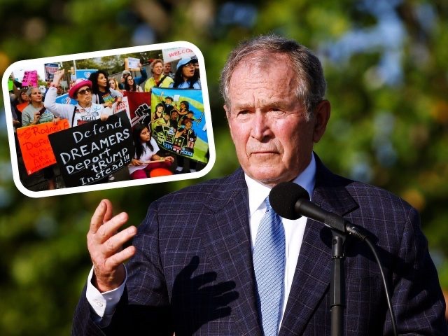 El martes, Bush y la ex primera dama Laura Bush se reunieron con los extranjeros ilegales Gerardo Casas, Rebeca Gurrola y Dip Patel, todos los cuales están inscritos en el programa de Acción Diferida para los Llegados en la Infancia (DACA) del expresidente Obama, así como con defensores de la migración masiva del Servicio Familiar Judío de San Diego y la Asociación Americana de Guardería y Paisaje.
