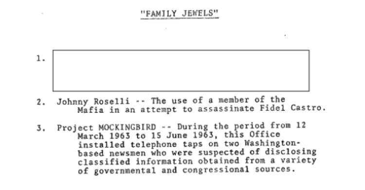 En 2007, una gran suma de documentos conocidos como las «Joyas de la Familia» fueron desclasificados y publicados por el Archivo de Seguridad Nacional, lo que reveló que la CIA había interceptado rutinariamente a reporteros de noticias con sede en Washington. Lo más probable es que las personas que fueron interceptadas fueran consideradas una amenaza y no cumplirían con sus esfuerzos de propaganda y vigilancia.
