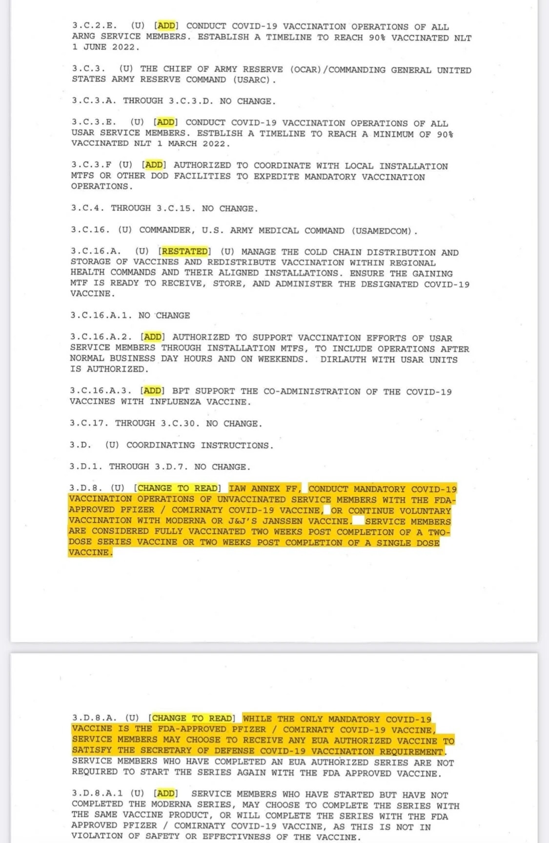La denuncia penal del Capitán contra el Comandante General afirmaba que estaba exigiendo vacunas con vacunas que afirmaban estar aprobadas por la FDA. El DoD está operando bajo la CREENCIA de que las vacunas que exigen tienen licencia completa. Podría decirse que este no es el caso.