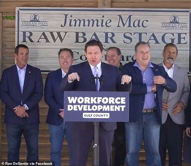 El gobernador de Florida, Ron DeSantis (en el podio), afirmó que su estado atravesaría una «Guerra Fría» si los georgianos eligen a la demócrata Stacey Abrams como gobernadora este otoño.