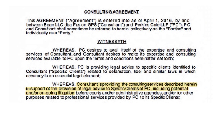 1 de abril de 2016: Fusion GPS firma un contrato con Perkins Coie.