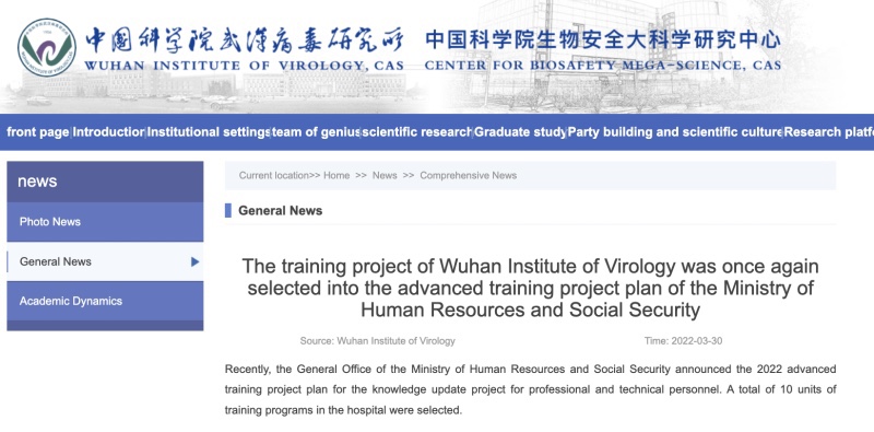 El programa de capacitación fue adoptado por el «Plan de Proyecto de Capacitación Avanzada» del Ministerio de Recursos Humanos y Seguridad Social del país, según una publicación del 30 de marzo en el sitio web del laboratorio de Wuhan.