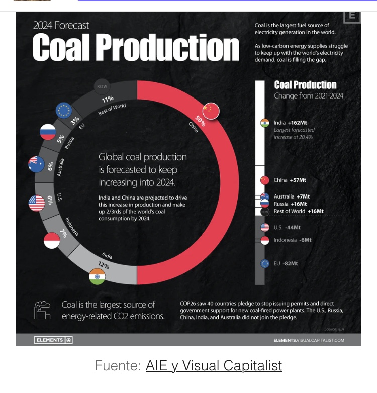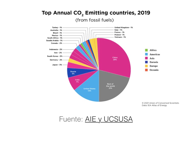 China, el mayor contaminador del mundo, que produce el 29 por ciento de las emisiones de dióxido de carbono del mundo, más que los Estados Unidos y la Unión Europea juntas, quemó más del 53 por ciento del carbón utilizado en el mundo en 2020.