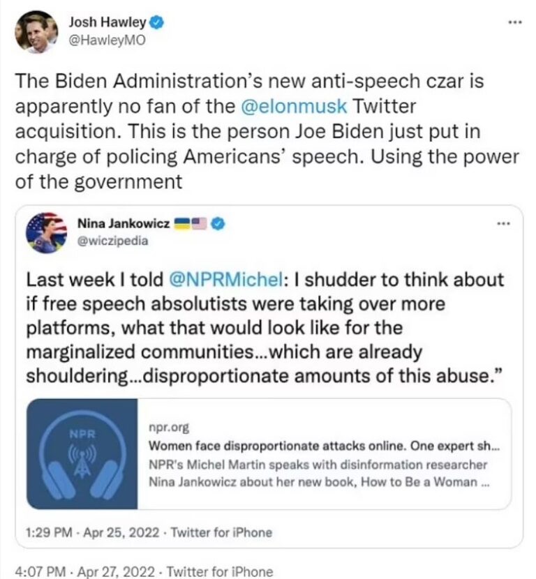 Si la Junta de Desinformación realmente toma medidas contra los derechos de los estadounidenses en virtud de los EE. UU. Constitución, la administración Biden está enviando un mensaje escalofriante alto y claro: no es defensora de la libertad de expresión y hará todo lo que esté a su alcance para limitarla si se considera políticamente ventajoso para hacerlo.