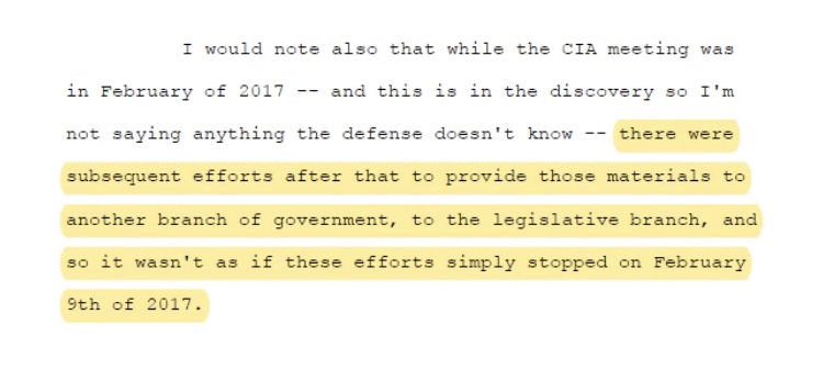La «investigación en curso» del Asesor Especial sobre Rodney Joffe. El Asesor Especial le contó al tribunal que, si bien Joffe y Sussmann empujaron el engaño del Alfa Bank/Yotaphone a la CIA en febrero de 2017, esta información falsa también fue empujada «a otra rama del gobierno, al poder legislativo» en un momento posterior. Según el Asesor Especial: