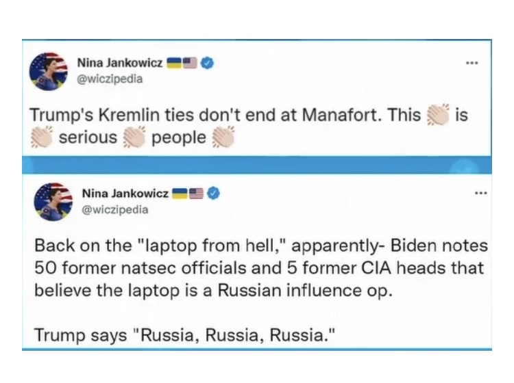 Y aquí está impulsando la mentira de Trump y Rusia.