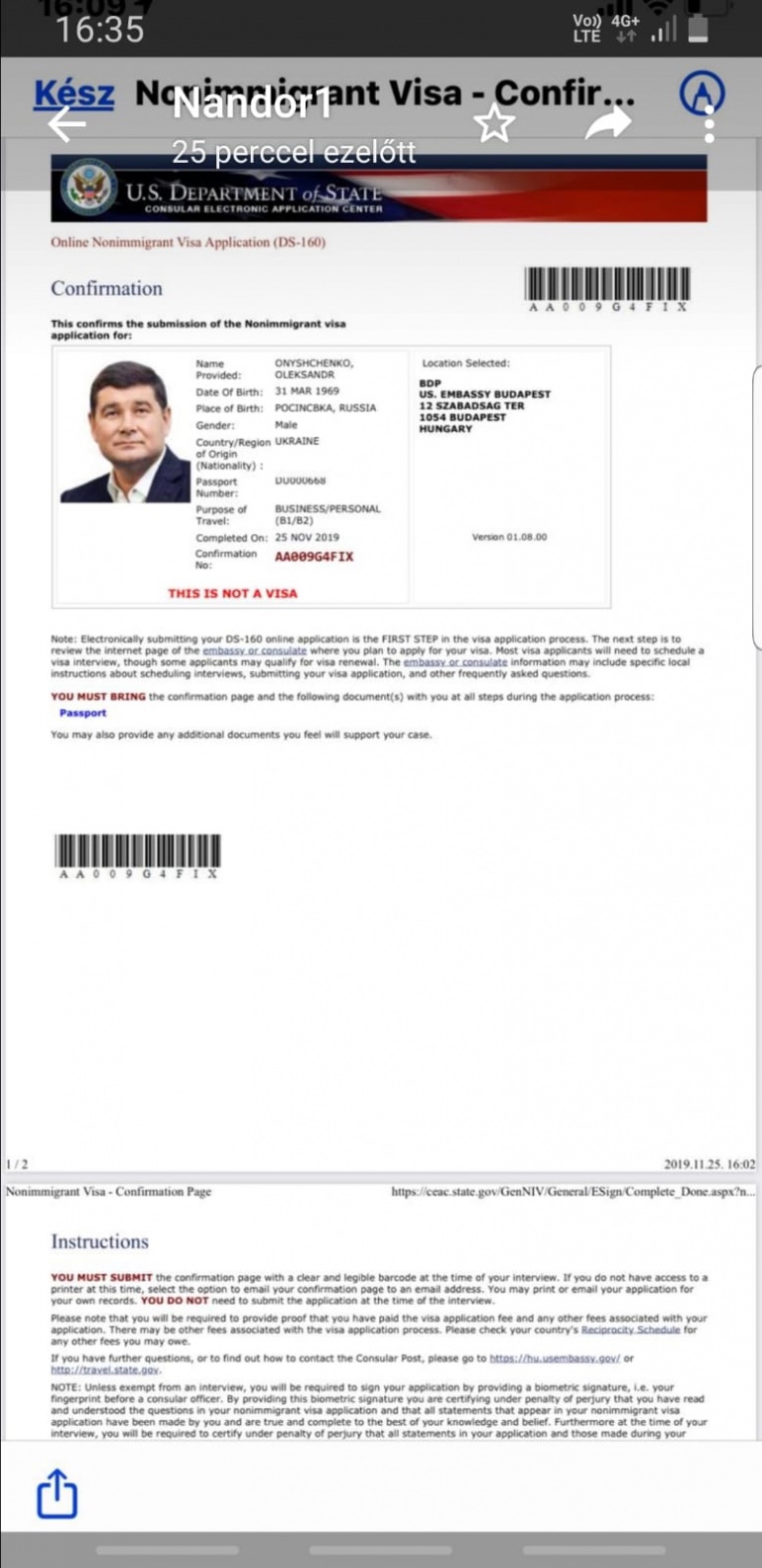 Más tarde, el propio Onishchenko anunció que planea regresar a Ucrania en diciembre. Como confirmación, proporcionó un billete para el vuelo de Ryanair el 13 de diciembre de Barcelona a Kiev.