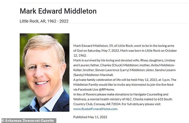 El único indicio potencial de una posible causa fue una solicitud en el obituario de Middleton de que, en lugar de flores, los buenos deseos donen a un servicio que se especializa en asesoramiento y terapia vinculada a la Iglesia de la Nueva Vida, que tiene su sede en Arkansas.