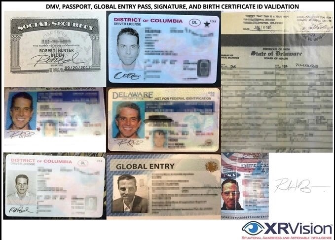 - Documentos de identificación oficiales de Hunter Biden, como licencia de conducir, pasaporte y certificado de nacimiento.