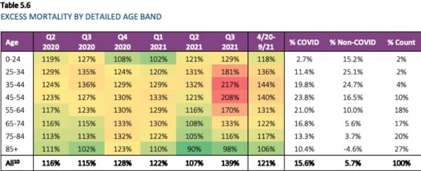 No pueden esconder los cuerpos. Exceso de mortalidad por edad en el tercer trimestre de 2021 a partir de datos de siniestros de seguros de vida. Nuestro establecimiento de salud pública está ignorando por completo este desastre. Estos jóvenes no murieron de Covid. (recorte)