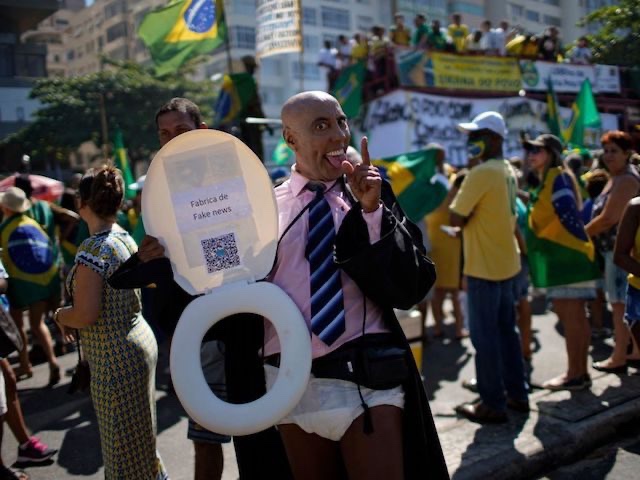 Los asistentes sostenían carteles condenando personalmente a de Moraes; un participante en Río de Janeiro se disfrazó de de Moraes, sosteniendo un asiento del inodoro que decía «fábrica de noticias falsas».