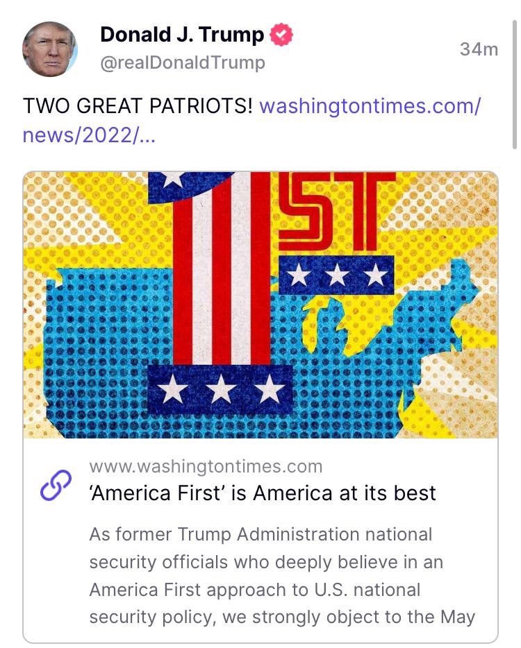 FUENTE 👉 https://www.washingtontimes.com/news/2022/may/19/america-first-is-america-at-its-best/