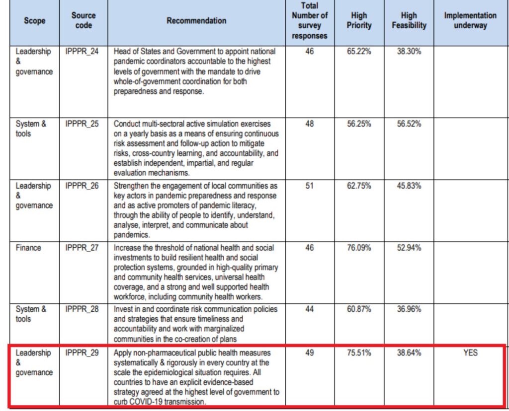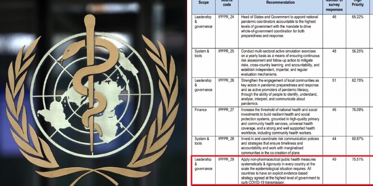 El Instituto Brownstone informó que «La Organización Mundial de la Salud tiene la intención de hacer que los bloqueos y otras intervenciones no farmacéuticas destinadas a frenar la propagación viral sean parte de la guía oficial de pandemia».