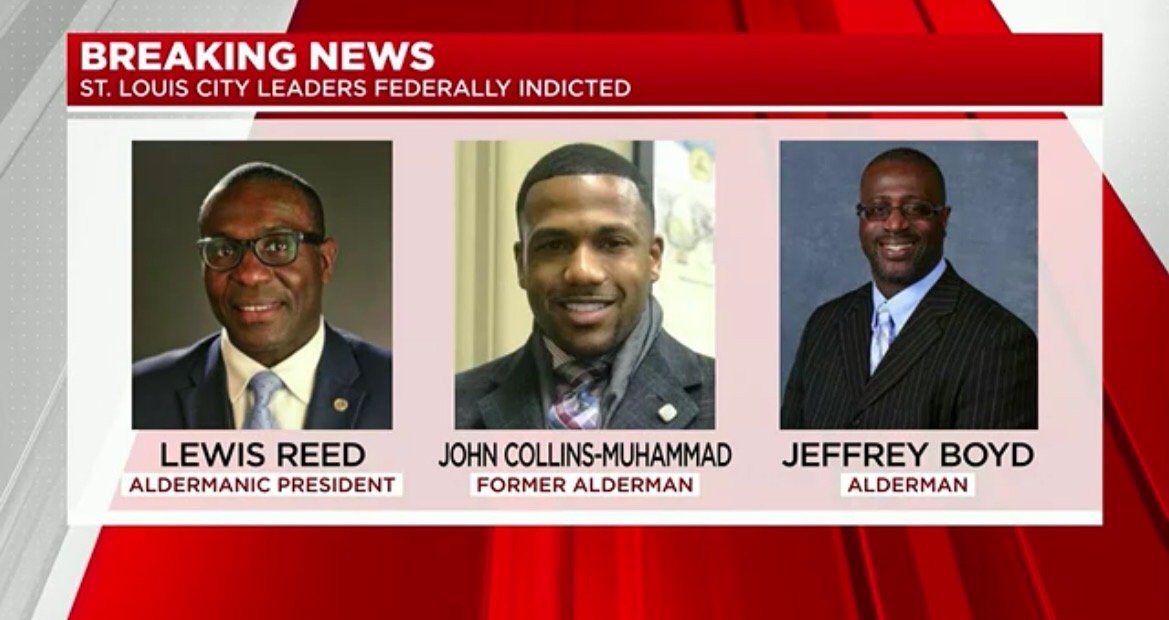 Lewis Reed, presidente del concejal, John Collins-Muhammad, concejal del distrito 21 que renunció recientemente, y Jeffrey Boyd, concejal del distrito 22, fueron acusados de recibir dinero en efectivo a cambio de favores políticos y tratos de tierras, informó KMOV.
