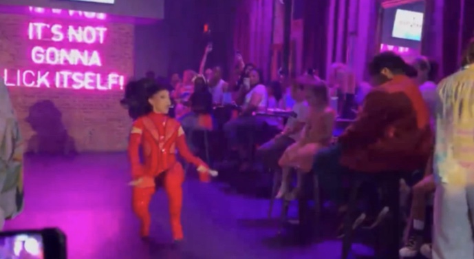 El vídeo muestra a drag queens bailando con niños pequeños y enseñándoles a caminar por la pasarela en el bar gay.