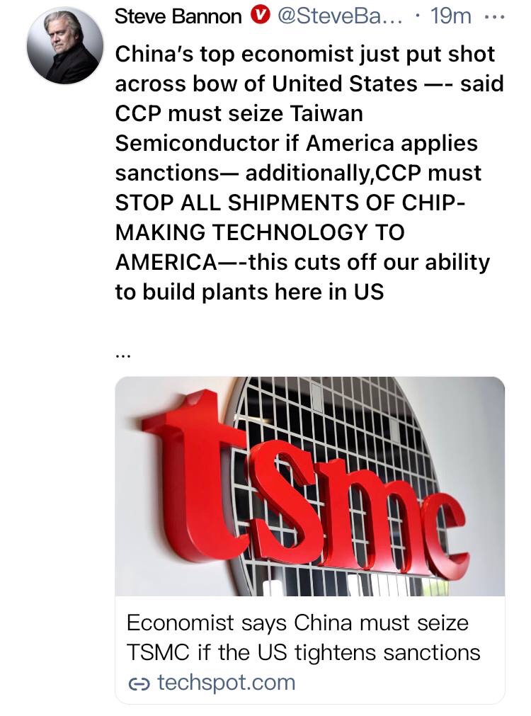 Chen destacó a TSMC en el discurso en el Instituto de Estudios Financieros de Chongyang en la Universidad Renmin el mes pasado. «Especialmente en la reconstrucción de la cadena industrial y la cadena de suministro, debemos apoderarnos de TSMC», agregó. https://t.me/QAnons_Espana