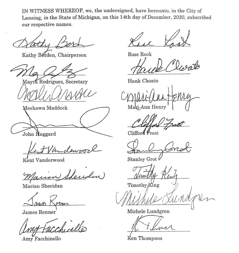 Los informes indican que un elector ya ha recibido hoy una citación por parte del «Agente Especial» de los Archivos Nacionales y dos agentes del FBI de Flint que lo acompañan. La electora atendida, Kathy Berden, no ha respondido a una solicitud de comentarios. También se atendió a la elector Amy Facchinello.
