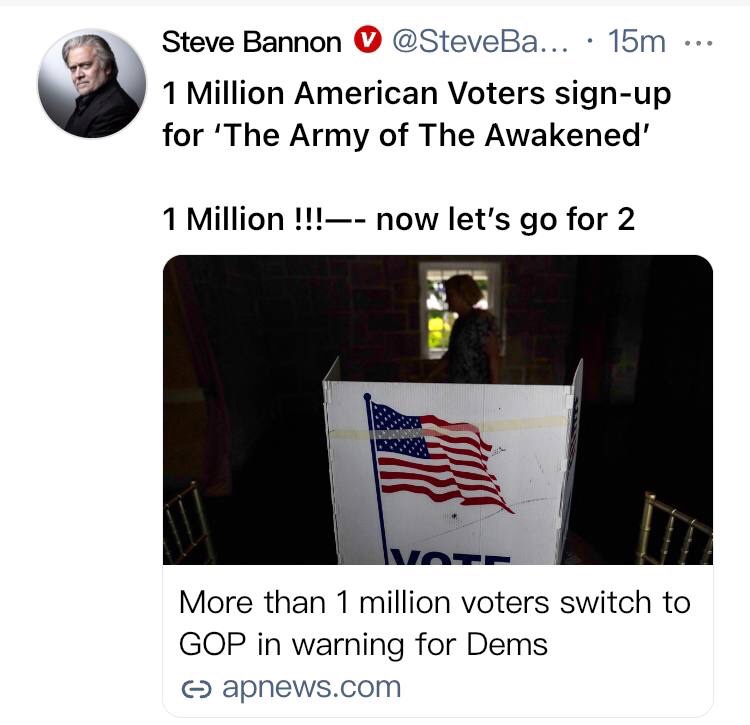 Pero durante el último año, aproximadamente dos tercios de los 1,7 millones de votantes que cambiaron su afiliación partidista se pasaron al Partido Republicano. En total, más de 1 millón de personas se convirtieron en republicanos en comparación con alrededor de 630.000 que se convirtieron en demócratas. https://t.me/QAnons_Espana