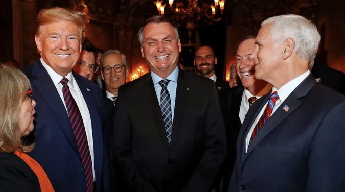 Trump y el presidente brasileño Bolsanoro, que es increíblemente depilación roja, antiglobalista, y se AMA a sí mismo un poco de Trump. No se ve a los líderes mundiales saludando así a Biden. Eso es verdadera felicidad.