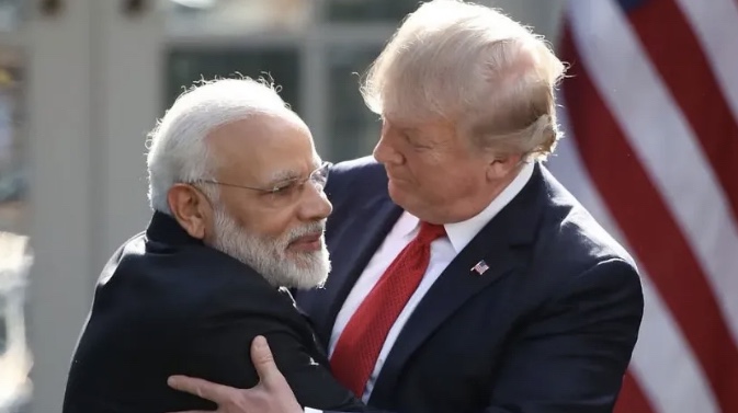 Trump y el primer ministro indio Modi. Con el que Trump también tiene una relación fenomenal. Mucho abrazo cálido y verdadera diplomacia entre los dos. Su amistad está bien documentada y es ampliamente adorada. ¿Alguna vez has visto a alguien abrazar así a Biden o a Obama?