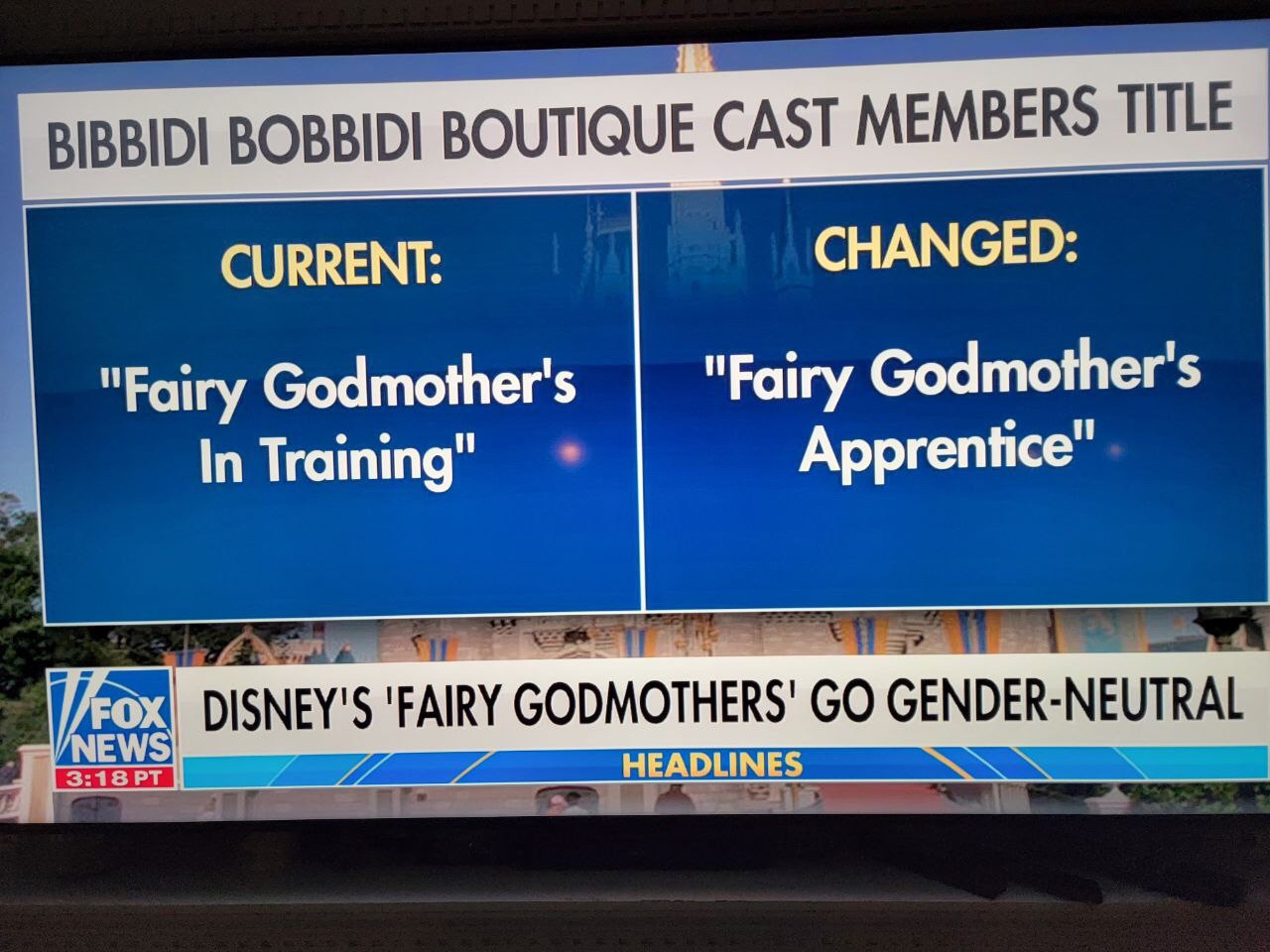 Un padre de Nueva York, que llevó a sus dos hijos pequeños a Disney World en Florida, comentó sobre el cambio: «Vi esto [el cambio en el título a ‘Hadas madrinas en entrenamiento’] y creo que es absurdo». https://t.me/QAnons_Espana