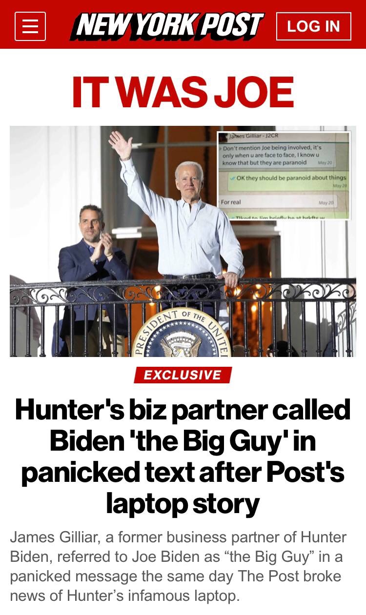 Uno de los ex socios comerciales de Hunter Biden se refirió a Joe Biden como «el tipo grande» en un mensaje de pánico el mismo día que The Post dio a conocer la noticia de la infame computadora portátil del infierno dejada por el hijo del presidente, The Post se enteró. https://t.me/QAnons_Espana