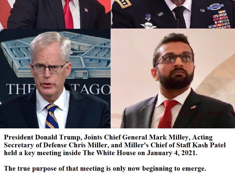 No fue hasta que tanto Patel como Miller fueron invitados entrevistados en el programa Fox News de Sean Hannity que dos de los participantes clave de esta reunión del 4 de enero de repente retiraron el telón y revelaron cuál había sido el verdadero propósito de la reunión. https://t.me/QAnons_Espana