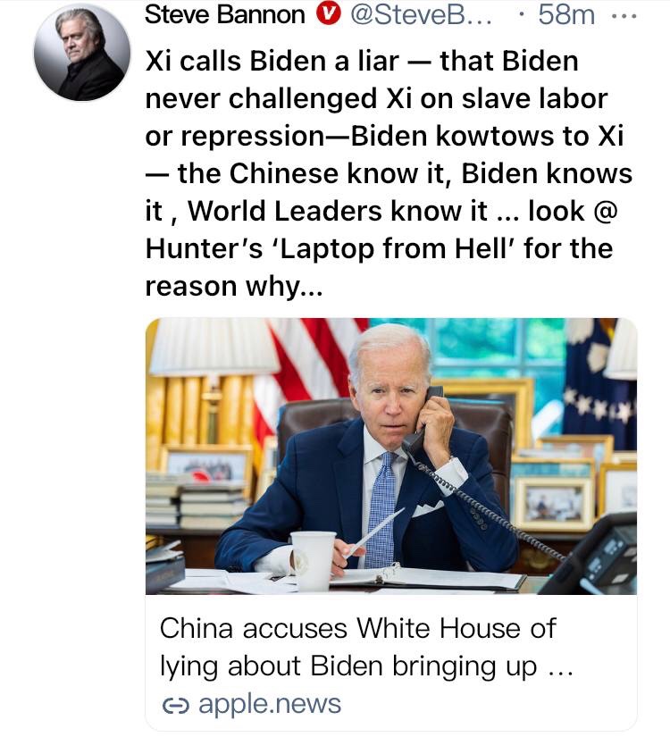 El presidente Biden y el presidente Xi Jinping hablaron por teléfono durante más de dos horas el jueves. https://t.me/QAnons_Espana