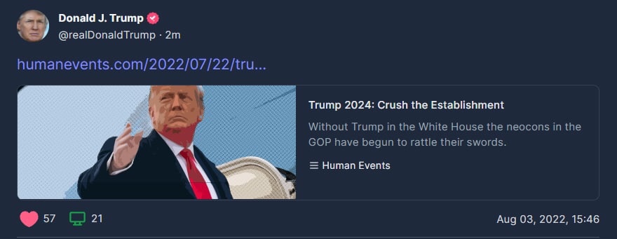 FUENTE 👉 https://humanevents.com/2022/07/22/trump-2024-crush-the-establishment/
