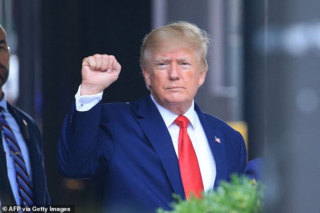 Donald Trump levanta el puño mientras camina hacia un vehículo fuera de la Torre Trump en la ciudad de Nueva York el 10 de agosto.