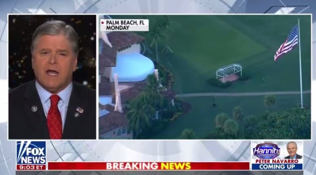 El miércoles por la noche, Sean Hannity CONFIRMÓ que las cámaras de seguridad de Mar-a-Lago NO FUERON apagadas durante el asedio de 9 horas del FBI en Mar-a-Lago.