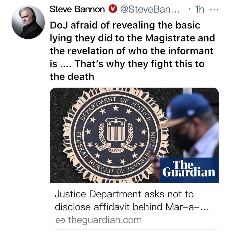 No está claro si el FBI se basó en informantes confidenciales, y The Guardian primero informó que la búsqueda se produjo en parte porque el departamento de justicia se preocupó de que los materiales clasificados permanecieran en Mar-a-Lago como resultado de las interacciones con los abogados de Trump.