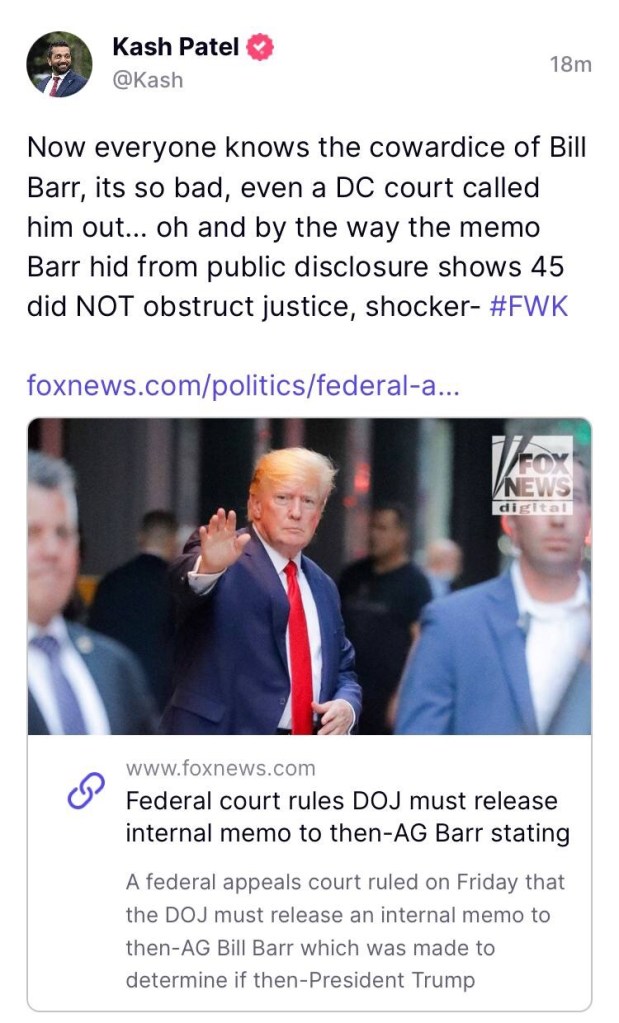 El memorando del Departamento de Justicia instó al entonces fiscal general Bill Barr a concluir que Trump no había obstruido la justicia. https://t.me/QAnons_Espana