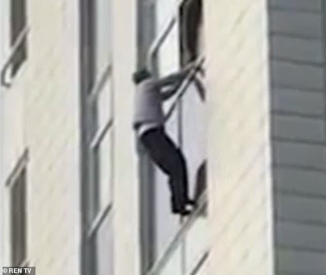 Tkachenko fue visto colgando de un apartamento en Moscú.