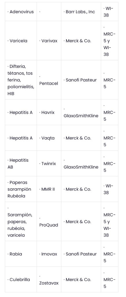 Estas son las vacunas aprobadas en EE. UU. Que contienen células fetales abortadas: [13]·