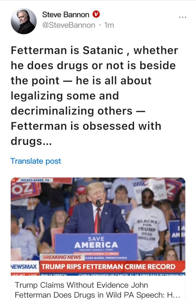 Después del mitin, CBS obtuvo una declaración de la campaña de Fetterman, descartando las afirmaciones como «más y más mentiras de Trump y el Dr. Oz, otro día, pero es la misma basura de estos dos tipos desesperados y tristes». https://t.me/QAnons_Espana