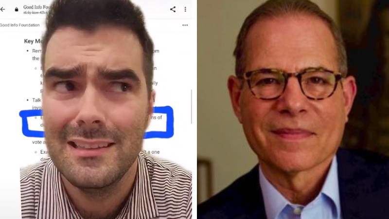 «Me acaban de ofrecer 400 dólares para hacer una publicación de propaganda contra Donald Trump relacionada con la investigación del 6 de enero que no es en absoluto cierta», dijo Preston Moore, Esq. en el vídeo. La Good Information Foundation, encabezada por Rick Stengel, ex subsecretario de Estado de la administración Obama, enfatiza que «Estados Unidos está en una crisis de información» y que «la desinformación está amenazando la salud pública, la seguridad, la confianza social y la democracia».