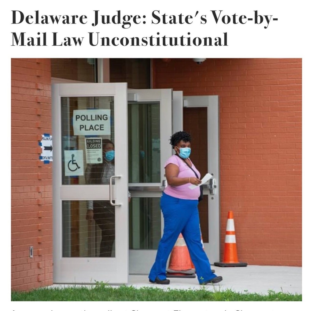 Un juez de Delaware dictaminó el miércoles que una nueva ley de voto por correo promulgada a principios de este año es inconstitucional y que el voto por correo no se puede usar en las elecciones de noviembre. https://t.me/QAnons_Espana