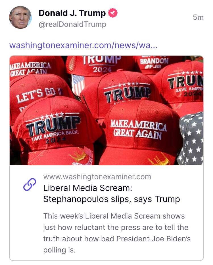 Brent Baker , vicepresidente de investigación y publicaciones del Centro de Investigación de Medios, explica nuestra selección semanal: “Después de todos los ataques legales y la renovada hostilidad de los medios contra Donald Trump en los últimos meses, el hecho de que su propia encuesta encontró que Trump aún vencería al presidente Biden realmente debe irritar a Stephanopoulos. Ese podría haber sido el tema principal a destacar de la encuesta, no uno para enterrar como un aparte en lo profundo del programa sin siquiera citar los números específicos”. https://t.me/QAnons_Espana