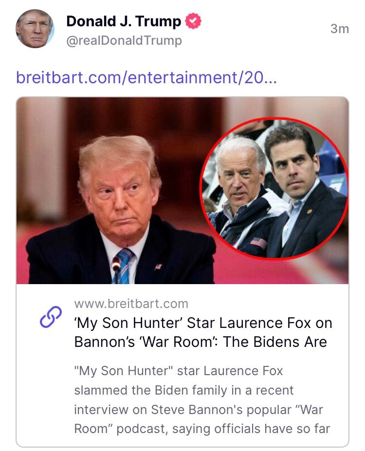 Durante un panel de discusión sobre la película en Truth Social, Schweizer llamó a My Son Hunter una “versión abreviada” de su libro más vendido de 300 páginas que relata la corrupción de la familia Biden. https://t.me/QAnons_Espana
