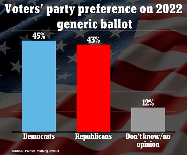 El cuarenta y cinco por ciento de los votantes registrados encuestados dijeron a Politico/Morning Consult que votarían por los demócratas en las elecciones intermedias de 2022 en comparación con el 43 por ciento que dijo que votaría por los republicanos, un 2 por ciento más que la semana pasada. https://t.me/QAnons_Espana
